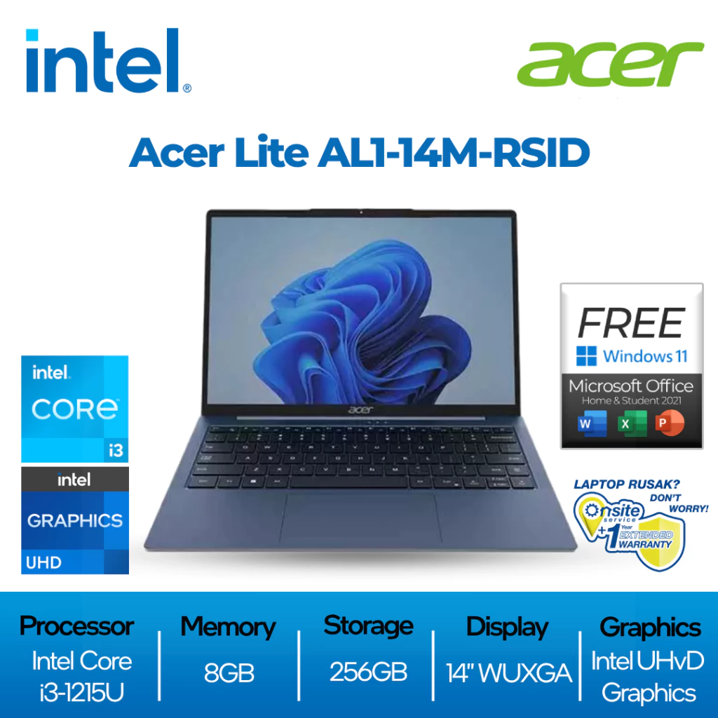 Acer Aspire Lite 14 AL1-14M-RSID Intel Core i3-1215U 8GB 256GB SSD W11 Home + OHS 2024 (UN.H7MSD.00D) Cosmic Navy + Backpack