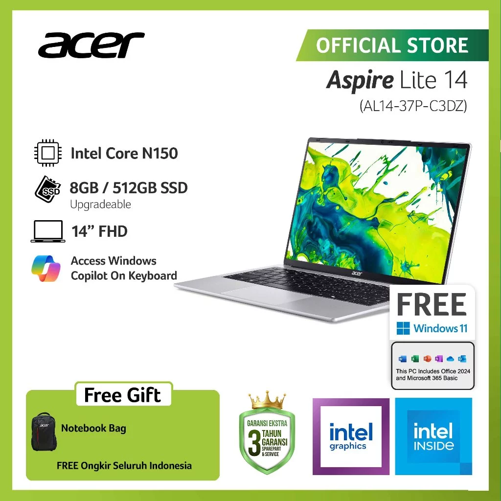 Acer Aspire Lite AL14-37P-C3DZ Intel N150 8GB DDR4 512GB SSD W11 Home + OHS 2024 (NX.DDESN.002) Light Silver + Backpack
